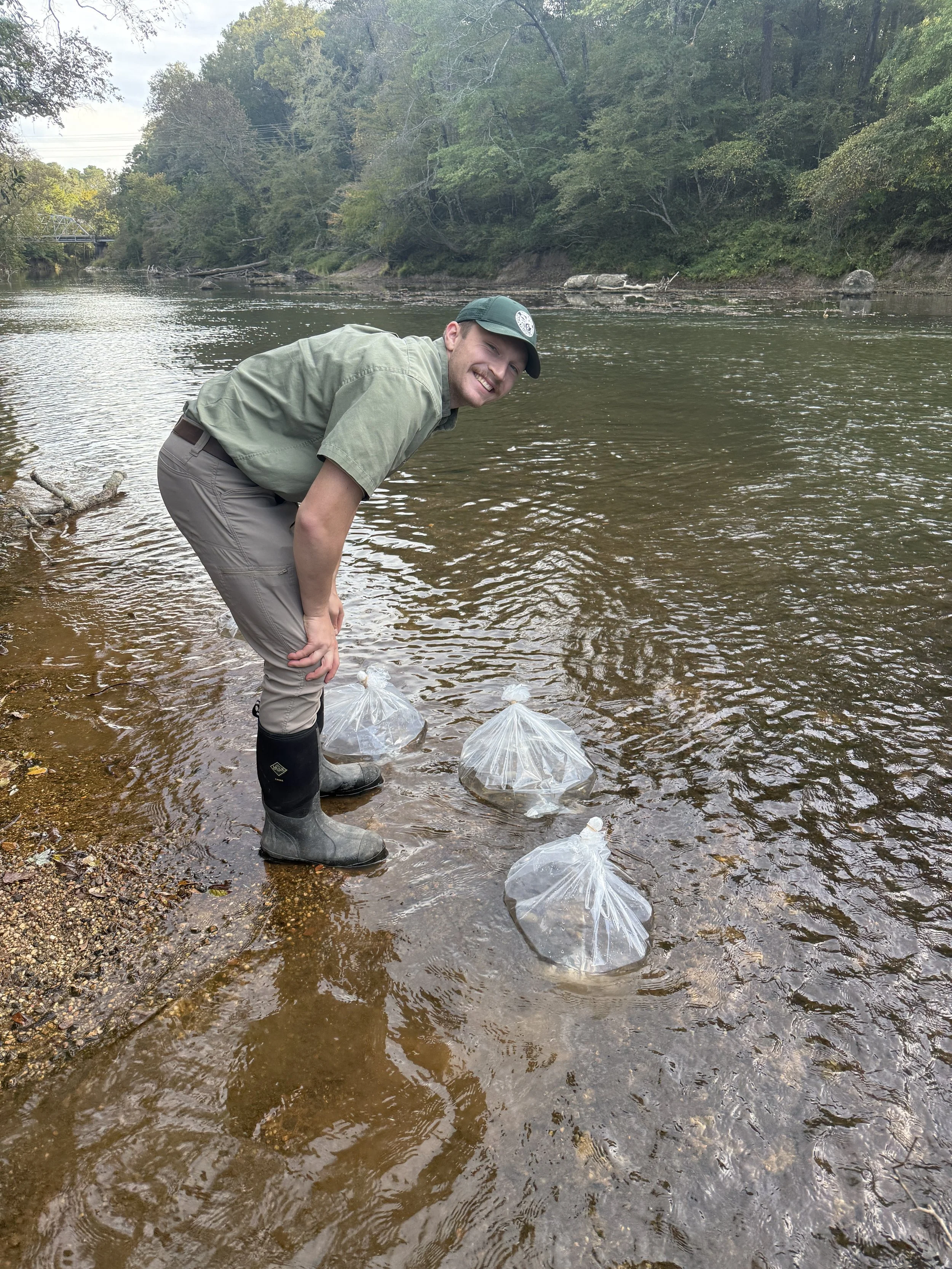During the warmer months, most of the week you will find me helping with fieldwork in a stream seining for fish, freediving for mussels, or dipnetting for crawfish.